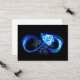 Luminous infinity symbol with glowing, beautiful, lushly blooming rose made of blue flames on black background.