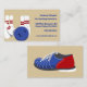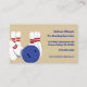 Faites la promotion de votre entraîneur de bowling ou instructeur d'entreprise ou votre bowling avec ces cartes de visite faciles à customiser. Elles présentent une illustration de style réaliste d'une boule de bowling et des épingles à l'avant et une illustration d'une chaussure de bowling à l'arrière. L'avant a des taches pour vous permettre d'ajouter votre nom et vos coordonnées personnalisées en lettres bleu bol.