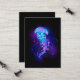 Grande méduse bleue, artistiquement dessinée, brillante, brillante, avec de longues tentacules sur arrière - plan noir avec bioluminescence violette. Méduse brillante.