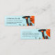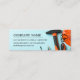 Un mini carte de visite dynamique avec un ensemble d'outils de menuiserie professionnels assortis avec une toile de fond bleu turquoise. Il dispose d'un emplacement pour votre nom d'entreprise unique et des informations, en plus d'un endroit pour télécharger votre propre logo d'entreprise. À l'envers, il y a de l'espace pour vos services offerts en points d'ampoule.