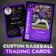Créez une carte de trading personnalisée et unique pour votre joueur de softball préféré ! Ce modèle personnalisable présente un design moderne violet avec de l'espace pour la photo, le nom, la position, les statistiques et les surbrillances d'un joueur. Parfait pour célébrer un joueur spécial, créer un cadeau d'équipe ou faire un souvenir mémorable. Customisez avec les informations de votre joueur et faites-en un objet de collection précieux.