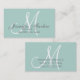 Elégant Monogram Personnalisable carte d'appel maman sur un arrière - plan vert menthe avec des couleurs de texte gris et blanc. Etre mère est tout aussi difficile, sinon plus difficile, que toute carrière professionnelle. Pourquoi ne pas l'élever à un niveau professionnel avec cette élégante carte d'appel monogramme maman. Ajoutez vos informations. Elke Clarke©2010. Contacter le magasin pour d'autres couleurs arrière - plans.
