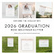 Parties scintillant d'or Rose tendance Photo 2024 Graduation. Une fausse parties scintillant borde le bord supérieur de chaque côté et Graduate est dans un script élégant avec des swashes. Personnalisez facilement le texte de chaque côté à vos propres besoins, et remplacez l'exemple d'image par le vôtre.