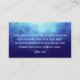 Personnalisez cette carte de verset moderne avec une nébuleuse bleue. Le verset biblique Jean 3:16 est sur le devant. Tout le texte est modifiable. Cette carte de visite bleu foncé avec un script blanc clair et simple peut être modifiée pour vos besoins. Pour le pasteur chrétien, ajoutez votre nom et titre ainsi que votre lieu de culte au verso. N'oubliez pas non plus de personnaliser le verso avec l'adresse de l'église, le numéro de téléphone, l'adresse e-mail ou l'adresse du site web. J'ai créé ce design unique avec une brume de nébuleuse bleue et blanche. Cela a l'air cool sur le fond bleu foncé. Cela ferait une excellente carte de visite pour un pasteur, un ministre, un conseiller ou d'autres professionnels de l'église ou du domaine spirituel. Vous pouvez également ajouter d'autres versets bibliques sur le devant.