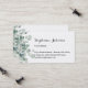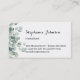 Présentez-vous avec élégance et grâce lorsque vous échangez ces cartes de visite sophistiqués. Votre nom et vos coordonnées sont définis dans une police de caractères classique décorée avec un design feuille d'eucalyptus naturel. Faites une impression ensoleillée avec ces élégantes cartes de visite.