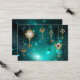 Or, clés antiques avec engrenages et cadrans accrochés sur chaînes dorées sur arrière - plan vert lumineux.