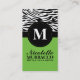 Notre télécarte de maman barrée par zèbre sauvage est une carte d'amusement pour la maman plus aventureuse. L'avant de cette carte de maman est décoré d'un monogramme et contient des noms vous et de vos enfants, alors que le dos contient votre information de contact essentielle. Ajoutez votre nombre de téléphone domicile, nombre de téléphone portable, l'adresse email, URL de site Web ou l'information sociale en ligne de mise en réseau cependant que vous choisissez. Cliquez sur le bouton de "personnaliser" pour changer des couleurs des textes, tailles et les polices, ajoutent le texte supplémentaire, les images ou les photos pour créer une carte véritablement un-de-un-aimable pour aucun supplément.