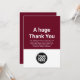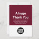 Personnalisez facilement cette carte d'appréciation personnalisée pour les employés du Merci avec le logo de l'entreprise, le nom de l'entreprise, le nom de l'employé et le message de remerciement. Un design d'entreprise simple en couleurs bordeaux et blanches entièrement personnalisable en tailles avant et arrière, sans-serif polices de base et moderne et un look professionnel et clair. Disponible en forme carrée aussi, en taille moyenne, petite et grande. Pas d'ordre minimum. entreprise, employé, standard, classique, vente au détail, petite entreprise, personnalisation carte de retraite d'employé merci appréciation de retraite quotepastor docteur professeur lawyerremercier le jeune oublier la différence que vous avez fait principal bossbig jumboréred employé