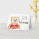 Cette carte "juste parce que" aquarelle peut sembler simple, mais elle est très polyvalente. L'avant montre un gros ours amical tenant un coeur rouge peluché. L'intérieur contient le texte "Juste parce que - voici un gros ours qui vous embrasse !". J'ai laissé le texte intérieur modifiable, afin que vous puissiez le customiser à vos besoins. Vous pourriez le donner à votre enfant, à quelqu'un qui a un anniversaire, à un partenaire ou à une amie, ou à un ami pour lui faire savoir que vous pensez à eux. Idée cadeau : Achetez un forfait en vrac, et utilisez-les pour surprendre les gens tout au long de l'année! Peu importe qui reçoit un câlin d'ours, il sera sûr de faire leur journée!