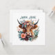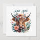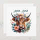 Belle vache Florale de haute terre dans un style aquarelle coloré portant une couronne de fleurs. Personnalisez avec un nom.