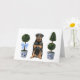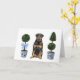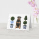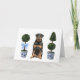 Cette carte de voeux présente un portrait aquarelle d'un mignon chien Rottweiler assis entre deux topiaires de style chinoiserie.