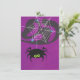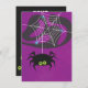 Une araignée noire aux yeux vert vif pendait d'une toile contre un arrière - plan violet vibrant. Le web comporte des points étincelants, ajoutant une touche de fantaisie. Ces cartes personnalisées sont des invitations abordables, des cadeaux de classe, des tours de passe-passe ou des faveurs de fête. Disponible avec ou sans enveloppes. Enseignants, donnez à vos élèves une carte spéciale de votre classe. Offrez aux astuces et aux traiteurs une alternative amusante aux bonbons. Utilisez comme invitation ou donnez à chaque enfant un souvenir à rapporter de votre fête. Image numérique de papier peint à la main. Dos : Ajoutez du texte personnalisé.