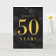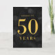 Chic 50th Birthday Greeting Card avec les mots "Cheers to 50 Years" en fausse feuille d'or contre un motif de bokeh gris foncé. Pour ajouter du texte à l'intérieur de la carte, cliquez sur le bouton "Personnaliser". *Veuillez noter que le filigrane Zazzle qui apparaît dans l'aperçu du zoom n'apparaîtra PAS sur le produit imprimé final. © Bois de rose et agrumes