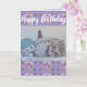 Carte d'art d'Anniversaire Fleur de Chat mignonne violet. Conçu à partir de mon aquarelle originale et photo de jardin de mon propre jardin.