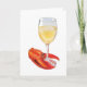 Carte de voeux pliée illustrant une griffe de homard autour de la tige d'un verre de vin blanc. Livrées avec des enveloppes blanches gratuites. Disponible en cartes simples ou en paquets. Copyright de l'oeuvre : Dominic A. White. Tous droits réservés.