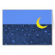 Une carte d'art vierge à l'art vintage élégant d'une nuit étoilée avec une lune brillante au croissant sur un ciel bleu clair.