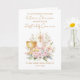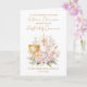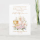 This design features an watercolor illustration of a gold colored chalice with a candle, surrounding by pink and white little flowers.