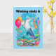 Carte Dauphin Portant un casquette d'anniversaire tenant