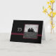 Carte de 25e anniversaire de mariage avec une photo d'un couple amoureux regardant le coucher du soleil sur la plage, encadrée en noir classique avec bordeaux.