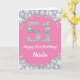 Carte de 51e anniversaire avec paillettes roses et argentées et nom personnalisé. Pour une personnalisation plus poussée, veuillez cliquer sur le bouton "Personnaliser" et utiliser notre outil de conception pour modifier ce modèle.
