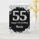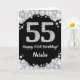 Carte de 55e anniversaire avec paillettes noires et argentées et nom personnalisé. Pour une personnalisation plus poussée, veuillez cliquer sur le bouton "Personnaliser" et utiliser notre outil de conception pour modifier ce modèle.