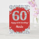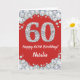 Carte de 60e anniversaire avec paillettes rouges et argentées et nom personnalisé. Pour une personnalisation plus poussée, veuillez cliquer sur le bouton "Personnaliser" et utiliser notre outil de conception pour modifier ce modèle.