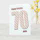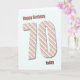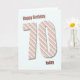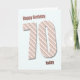 Une carte de 70ème anniversaire très moderne. Cette carte est vraiment fabuleuse. Grandes lettres à rayures modernes sur un arrière - plan bleu. Personnaliser pour votre propre message unique.