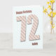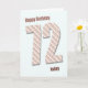 Une carte de 72e anniversaire très moderne. Cette carte est vraiment fabuleuse. Grandes lettres à rayures modernes sur un arrière - plan bleu. Personnaliser pour votre propre message unique.