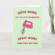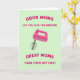 Conçue avec un thème de cuisine moderne, la carte présente un mélangeur à main de couleur rose électrique vif, incliné selon un angle comme s'il était en plein mélangeage. Derrière, un fond vert pastel doux maintient la scène calme tout en faisant ressortir le rose, comme un petit moment doux partagé autour d'un dessert ❤️. En haut, un lettrage fuchsia arrondi indique « LES BONNES MÈRES VOUS LAISSENT LÉCHER LES BATTEURS », donnant au design un ton gentiment taquin et affectueux. Près du bas, un texte fuchsia assorti répond avec « LES GRANDES MÈRES LES ÉTEIGNENT EN PREMIER », ajoutant une touche attentionnée et vigilante qui ressemble à un regard complice entre parents 👩. Les fouets du mélangeur sont clairement représentés, avec un ombrage lisse qui fait briller légèrement les pointes métalliques. Les formes simples et l'espacement soigné maintiennent l'attention sur la plaisanterie et le souvenir de cuisine ch