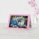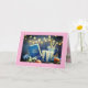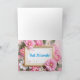 Carte de Bat Mitzvah avec une belle exposition de lumières, de bougies et de nourriture ; l'intérieur comporte des fleurs roses et blanches entourant un cadre doré avec le vœu, "Mazel Tov !" Personnalisez avec son nom et la date de l'événement.