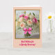 Un assortiment de roses roses et crème avec Baby's Breath dans un vase avec un arc rose fait un beau design pour cette carte exclusive d'Editwerks. Le premier salut est : "Meilleurs voeux pour une reprise rapide !" L'intérieur est vierge afin que vous puissiez facilement personnaliser votre message ou vos meilleurs voeux. Cette carte peut également être utilisée pour des annonces mariages, des cartes d'anniversaire ou une carte à un proche. Il peut facilement être utilisé pour une carte de sympathie en changeant le message et l'accueil.