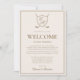 Carte de bienvenue de mariage de golf avec monogramme à blason classique élégant.