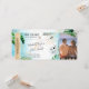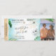 Billet de billet d'embarquement de mariage de plage de destination Ticket d'avion orné avec cœur et icône d'avion avec feuilles tropicales. Vous pouvez ajouter votre photo