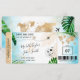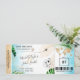 Billet de billet d'avion de destination Mariage de plage Ticket d'avion doré Sauvegarder la date avec coeur et icône d'avion avec feuilles tropicales