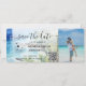 Billet de billet d'embarquement de mariage de plage de destination Ticket d'avion or avec illustration de la plage de palmiers aquarelle, Mexique ou tout autre lieu tropical. Ajoutez votre code QR et photo