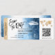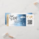 Destination Billet de passe d'embarquement de mariage sur la plage Or Avion Sauvegarder la date avec l'icône du navire de croisière avec des feuilles tropicales. Ajoutez votre code QR