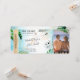 Billet de billet d'embarquement de mariage de plage de destination Avion or Billet de sauver la date avec icône de cœur et d'avion avec feuilles tropicales. Vous pouvez ajouter votre photo