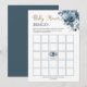Bouquet de swag floral monochromatique bleu surplombe ce baby shower garçon "Bingo" de conception de carte avec des mots de texte "Baby shower" faux ton or. Conception composite par Holiday Hearts Designs (droits réservés).
