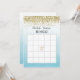 Carte de bingo de douche nuptiale avec parties scintillant en faux or et arrière - plan d'aquarelle bleu ombre.