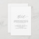 Cette délicate carte d'hôtel en calligraphie argentée est parfaite pour un mariage moderne. Le design minimaliste romantique présente une belle et élégante typographie gris argenté sur un arrière - plan blanc au look épuré et simple.
