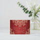 Un magnifique grenat à bijoux et un mariage rouge et or rubis ou toute autre carte d'enceinte de réception spéciale avec un sari ornemental d'inspiration indienne exotique comme un motif avec un lotus et un coucher de soleil fleuri. Cette belle et élégante carte moderne haut de gamme et luxe de style indien est parfaite pour toute occasion formelle avec une soirée orientale indonésienne marocaine arabe ou le thème aladdin. Design © Chrissy H. Studios, LLC. Tous droits réservés.