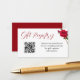 Cartes de boîtier mariages pour le registre des cadeaux. Dirigez les invités vers un site Web mariage pour trouver les informations de leur registre de cadeaux en customisant ces petites cartes avec leur code QR. Les cartes blanches ont un script rouge en haut, un court paragraphe sur le côté et un modèle de code QR. Une tige rose avec fleur et bourgeons, orne le coin supérieur droit. L'inverse est de rouge solide. Joignez une carte avec une invitation à la douche, à la fête de fiançailles, à la cérémonie et à la réception des mariages.
