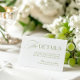 Cette élégante carte d'enceinte de mariage présente des rayures vert sauge et bleu clair, associées à une typographie serif intemporelle et à des accents de script délicats. Parfait pour partager votre site Web mariage, les instructions RSVP, les détails de voyage ou les informations sur l'hébergement avec vos invités. Entièrement personnalisable : mettez simplement à jour le texte en fonction de vos besoins. Partie de la collection de Mariages Iris — cliquez sur le lien de collection de cette page pour explorer la coordination des invitations, des menus, de la signalisation, etc.