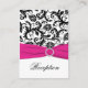 Cette carte de boîtier en damas noir et blanc avec ruban et bijoux en faux fuchsia correspond au faire-part de mariage ci-dessous. Vous pouvez aussi customiser que c'est une carte ou une carte d'itinéraire. S'il y a d'autres articles correspondants dont vous avez besoin, veuillez envoyer votre demande par courriel à niteowlstudio@gmail.com.