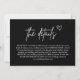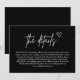 La "Black Handwriting Script Mariage Encape Card" allie sophistication moderne et touche personnelle et chaleureuse. Avec un élégant script manuscrit sur un arrière - plan noir audacieux, cette carte ajoute une façon frappante et intime de partager les détails de votre mariage. Idéal pour transmettre des informations essentielles comme l'itinéraire, l'hébergement ou les notes spéciales, son design élégant améliore toute suite mariage. Idéal pour les couples qui aiment l'élégance contemporaine, cette carte feuille une impression mémorable tout en gardant votre célébration sans effort chic.