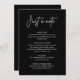 La "Just a Note Black Minimal Mariage Enclume Card" est le parfait mélange d'élégance moderne et de fonctionnalité. Présentant un design noir élégant, cette carte offre un moyen élégant de partager des détails essentiels tels que l'itinéraire, l'hébergement ou les notes chaleureuses. Idéal pour les couples qui adoptent une esthétique minimaliste, il complète toute suite de faire-part de mariage sans effort. Son aspect raffiné garantit que les informations importantes sont présentées avec clarté, ce qui en fait un ajout chic et réfléchi à votre journée spéciale.