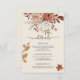 Cette élégante carte d'enceinte mariage d'automne présente des fleurs d'aquarelle orange brûlée et en terre cuite, des roses de jardin boho et des calligraphies manuscrites. Parfait pour inclure la réception, l'hébergement ou les détails du site Web dans une suite mariage de automne moderne, romantique et rustique.