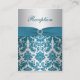Cette carte de boîtier de réception gris argenté et turquoise damassé est munie d'un ruban d'apparence satiné IMPRIMÉ et d'une boucle de bijoux en diamant IMPRIMÉE qui correspond au faire-part de mariage ci-dessous. Vous pouvez changer le mot "réception" si vous avez besoin qu'il s'agisse d'une carte d'itinéraires, d'une carte d'hébergement, d'une carte d'enregistrement de cadeaux, d'un site Web mariage ou d'une carte d'information. S'il y a d'autres articles correspondants dont vous avez besoin, envoyez un courriel à niteowlstudio@gmail.com.