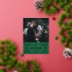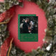 Un carte photo de Noël festif avec un cadre décoratif de flocon curviligne dessiné à la main avec des accents de papier doré.