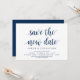 Carte de changement de date. Voici l'invitation de mariage reprogrammée (reportée / report) carte (Enregistrez notre nouvelle date), dans un design moderne minimaliste et épuré, avec une police Navy Blue.